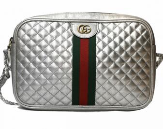 全新Gucci 541051 Silver Quilted Leather Shoulder Bag